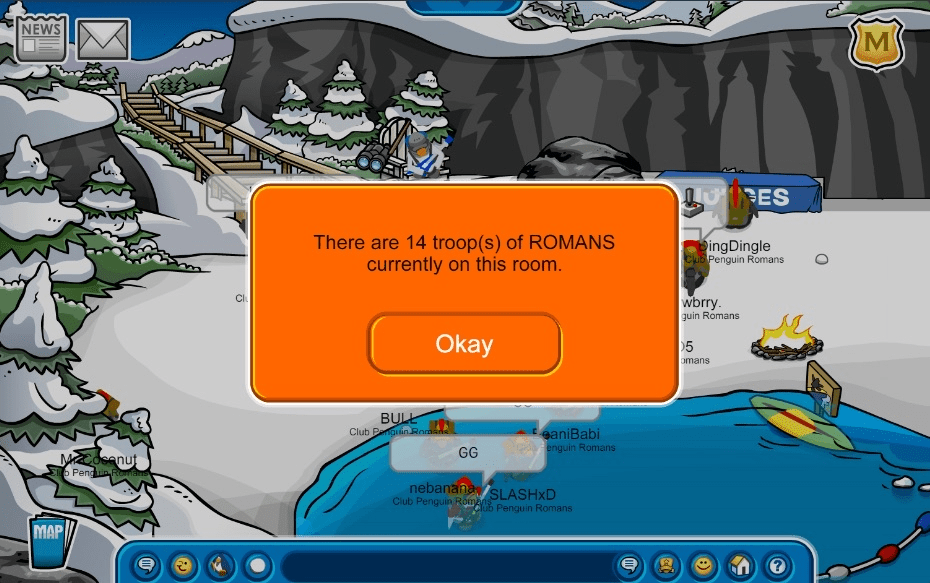 Ave Roma! Today we had our Club Penguin card jitsu event, which went decently as we were able to max 15 and have fun in card jitsu, where Neburt had the most wins, beating 5 people in card jitsu, with most averaging 1-2 wins.
