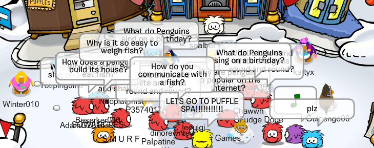 We logged onto Blizzard, Club Penguin Rewritten for a US training mission. We decided for this event, we would dress up as red and/or black puffles. We battled a Pookie clan along the way and wished our Tribune Cha a happy birthday. Thanks to all who attended. Seize the Night!