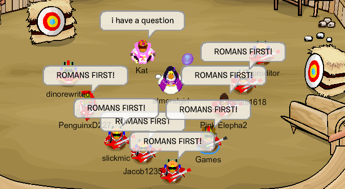 Welcome to the Club Penguin Romans! We are one of the oldest and most resilient armies of Club Penguin, with a lineage stretching back to 2006. Our goals are to provide our members with a unique, fun experience and give our enemies a fight they'll never forget. If you would like to join, click on the join button on the right-hand sidebar, which will redirect you to our Discord server for intake. We hope you enjoy your stay with us!