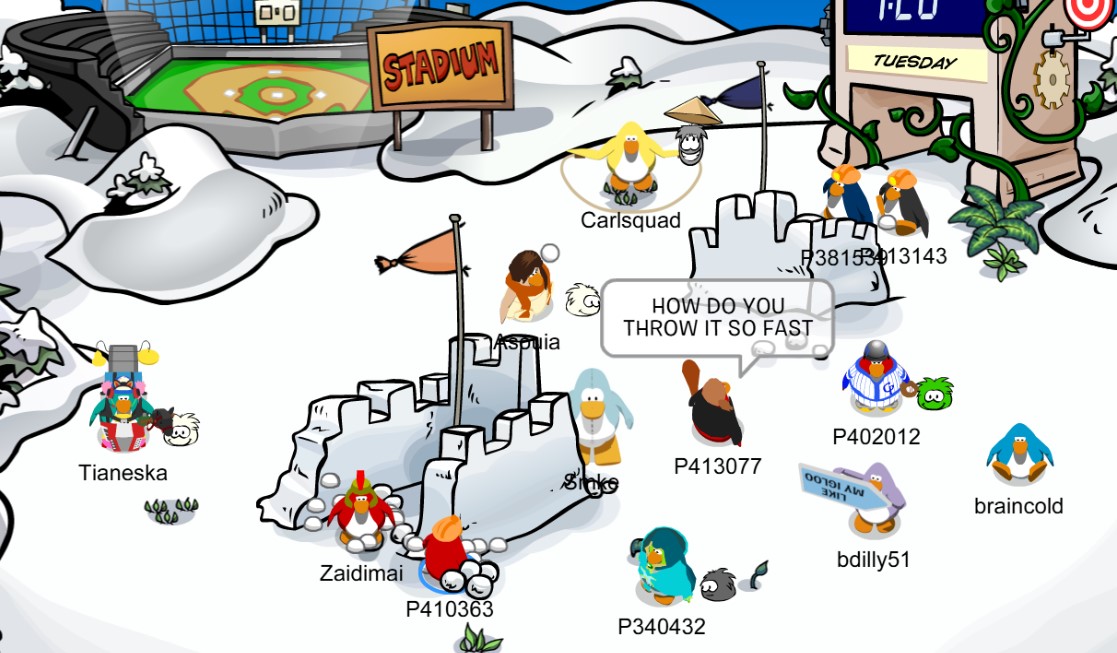 We logged onto CPJ’s Blizzard and set up shop at the Snow Forts. We started out small, but after a bit more people logged on and we were joined by randoms who were passing through, the fight grew in both stature and fervor. These events are slowly starting to catch on with the local CPJ populace, which is fantastic given that’s our entire motivation for hosting them.