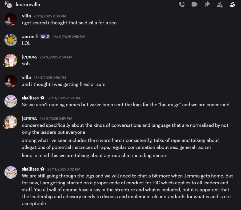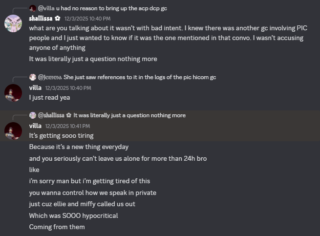 These are the very individuals responsible for the downfall of the People’s Imperial Confederation. During their time at the helm of PIC, this trio secretly maintained group chats with fellow members in which they were exposed for spewing many vile and reprehensible remarks. Below are screenshots capturing the moment they were confronted by PIC’s guardians, Sidie9 and Shallissa, who were compelled to step in once the truth came to light.