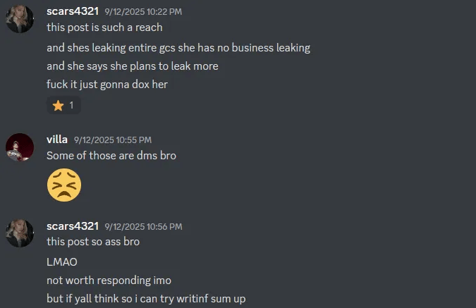 Scars even threatened to dox Shallissa for releasing the results of her investigations.