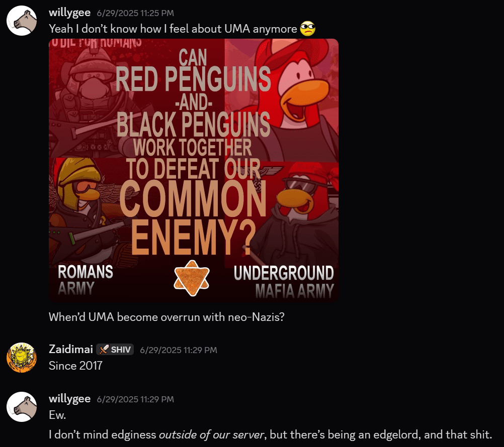 Filed under: Addressing the Empire, Important News/Updates, Posts, War | Tagged: alucard, bschar, bscharbach, bullying, club penguin, club penguin armies, club penguin army, club penguin romans, cpromans, doxxing, justin, nazi, nazism, neo-nazi, neo-nazism, racism, Romans, scars, teutons, tom, venom, villa |