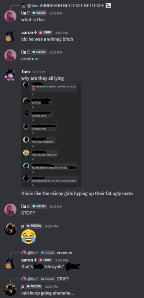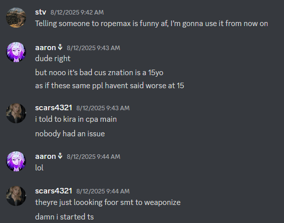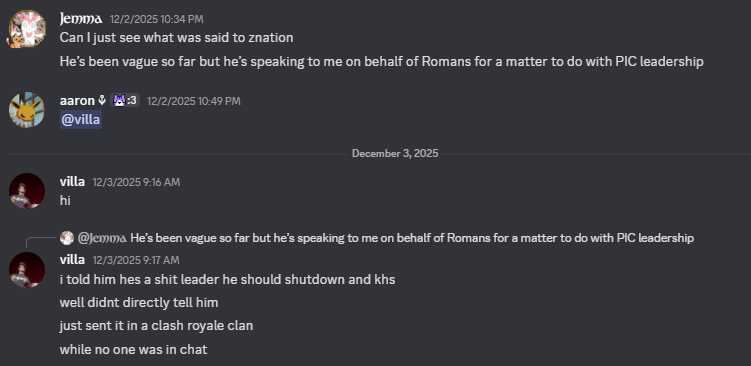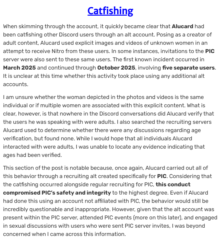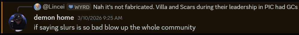 People who repeatedly engage in conduct like this should not be welcomed within CPA, let alone placed in positions of authority. A community cannot thrive while those who undermine it through harassment, threats, and exploitation are allowed to operate without consequence. The presence of figures like these in the Teutons speaks volumes about the direction that army has chosen to take.
