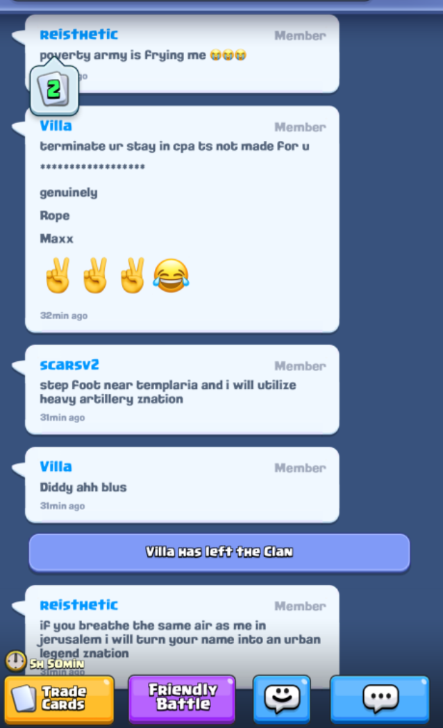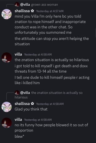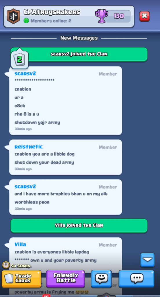 Villa and Scars also turned their hostility toward one of our leaders, Znation, subjecting him to relentless harassment and intimidation.