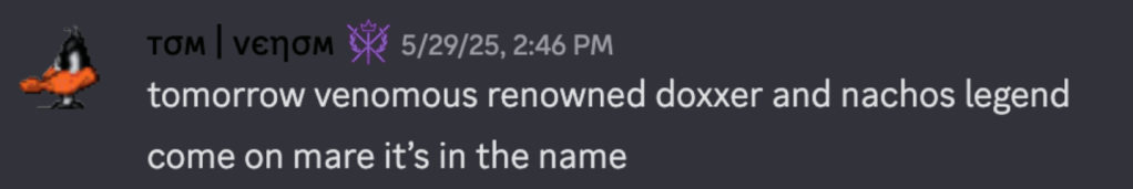 We also cannot forget about Tom’s doxxing history, doxxing Dillon and his family members in May 2025, as well as many other people.