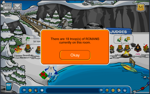 Ave Roma! Today we had our Club Penguin card jitsu event, which went decently as we were able to max 15 and have fun in card jitsu, where Neburt had the most wins, beating 5 people in card jitsu, with most averaging 1-2 wins.